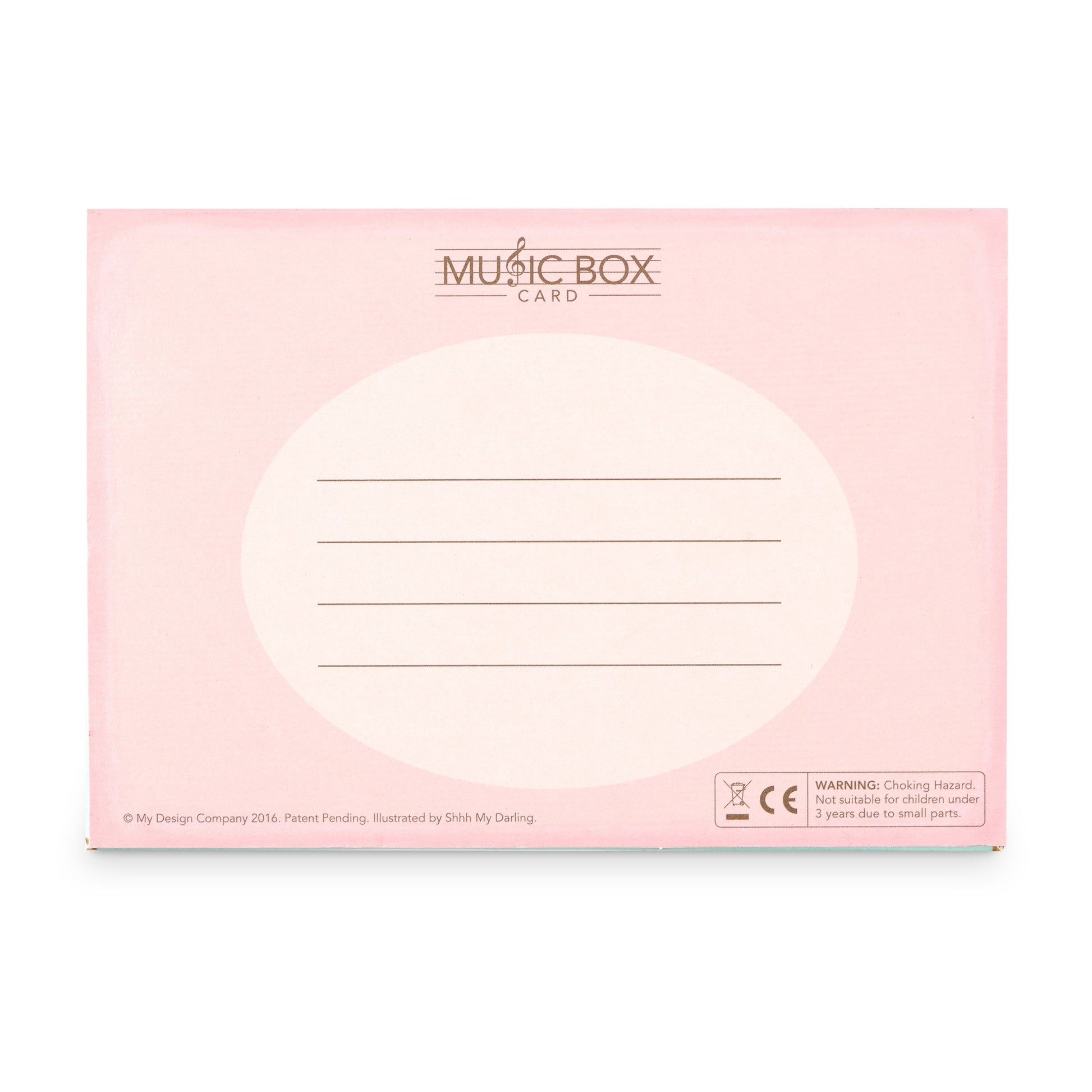 The front of the music box card looks like a conventional card, but opens to reveal a magnetic dancing character which moves around the card to the music when you press play.