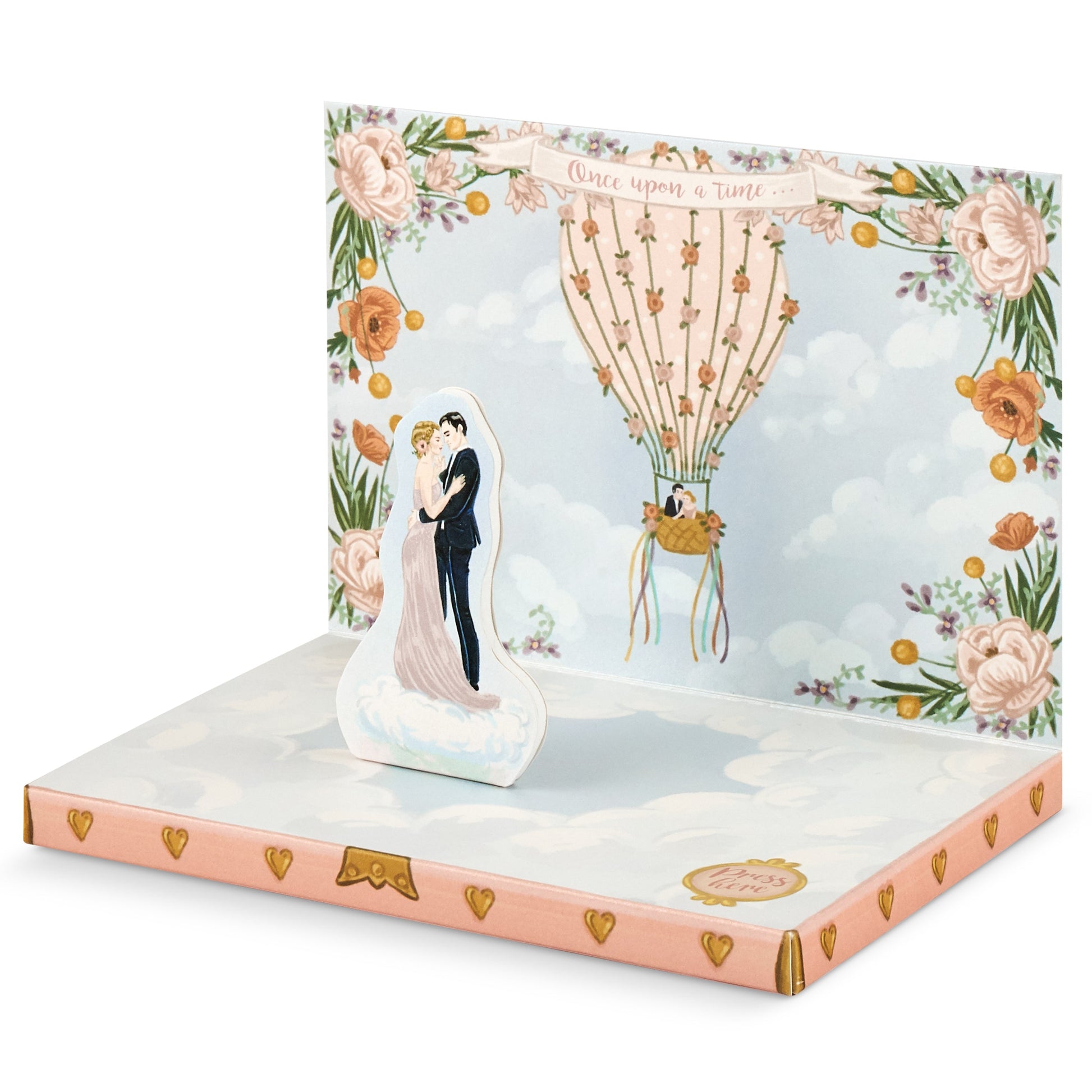 Open the Music Box Card to reveal a beautiful Wedding storytelling scene. Listen to the music and watch the happy couple magically glide around and around to the wedding music.